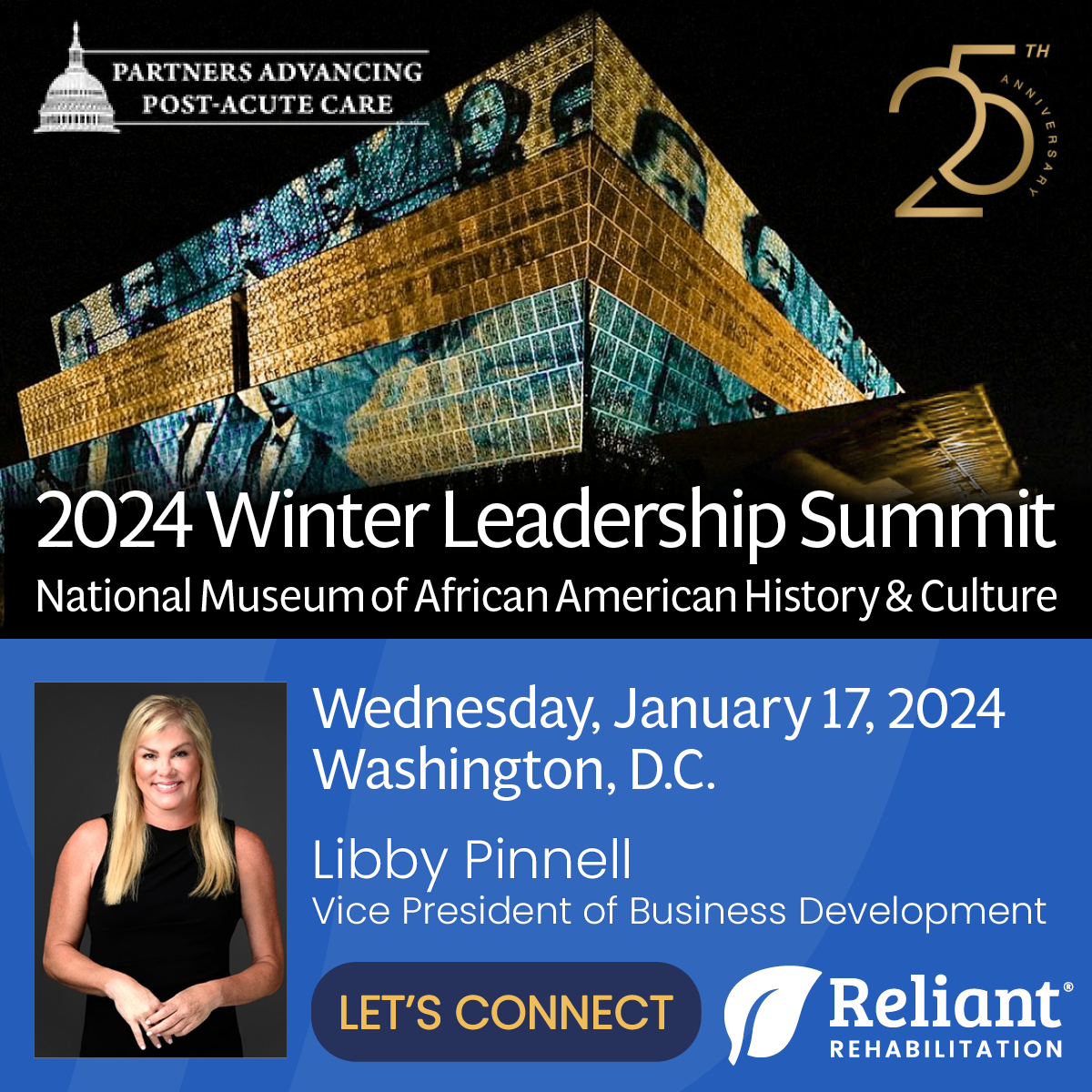 Reliant Rehabilitation PAPAC/ AHCA 2024 Winter Leadership Summit , Administrators, clinical directors and quality improvement staff. Ahca 2024 convention & expo.